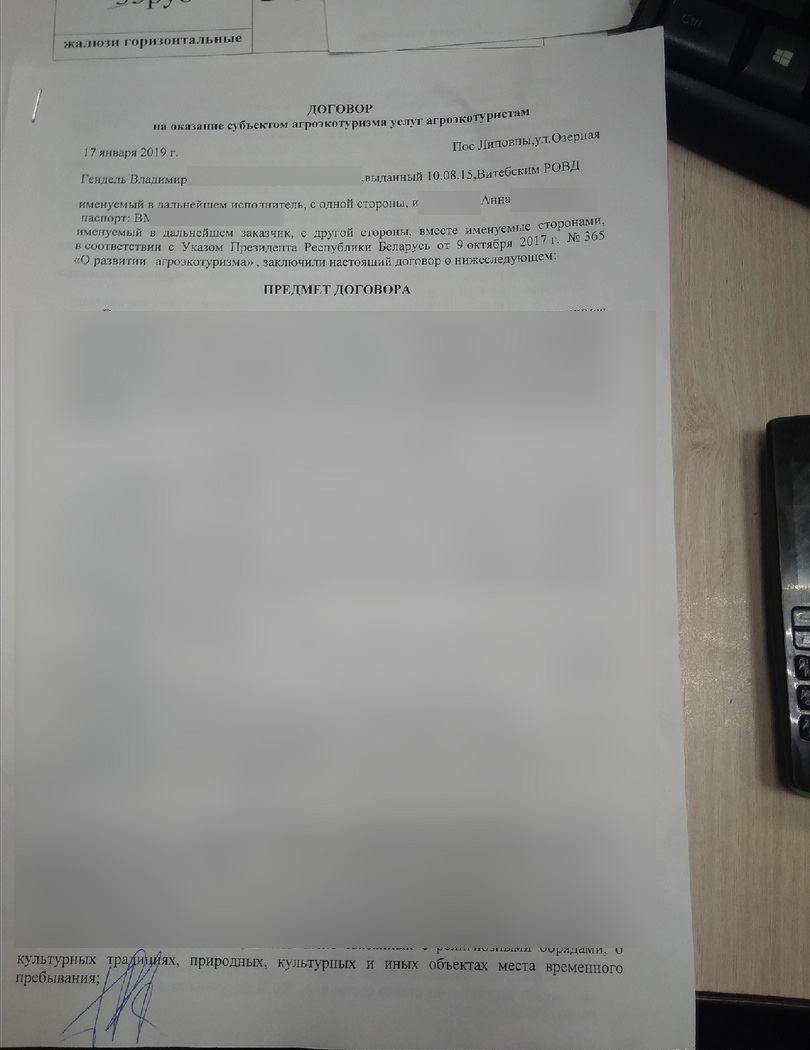 По согласованию с заказчиком исполнитель обязуется оказать лицам, являющимся агроэкотуристами (далее, если не указано иное, – агроэкотуристы), услуги в сфере агроэкотуризма в объеме согласно приложению на территории агроэкоусадьбы, расположенной по адресу: Витебмка обл., Витебский р-н, д. Липовцы, ул. Озерна1